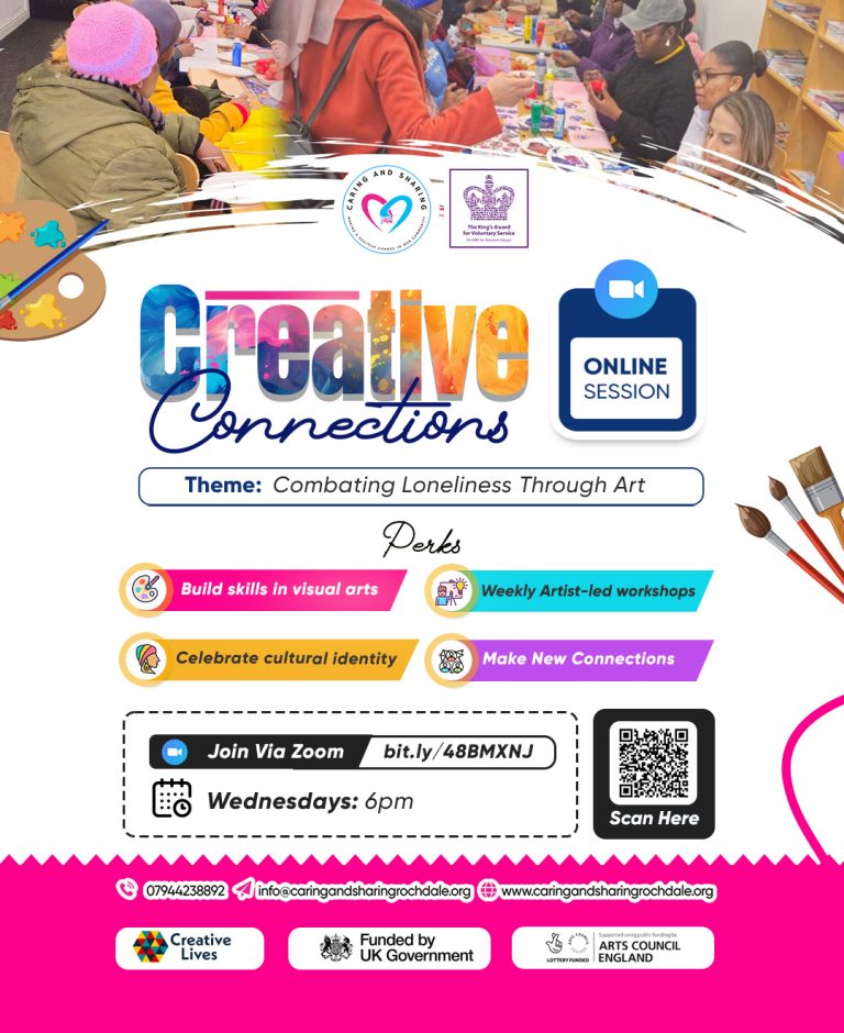 Creative Connections is a community-based arts project by Caring and Sharing Rochdale designed to foster belonging, connection, and personal growth through creativity. The project creates a safe and welcoming space where art becomes a tool for building community, confidence, and shared identity..